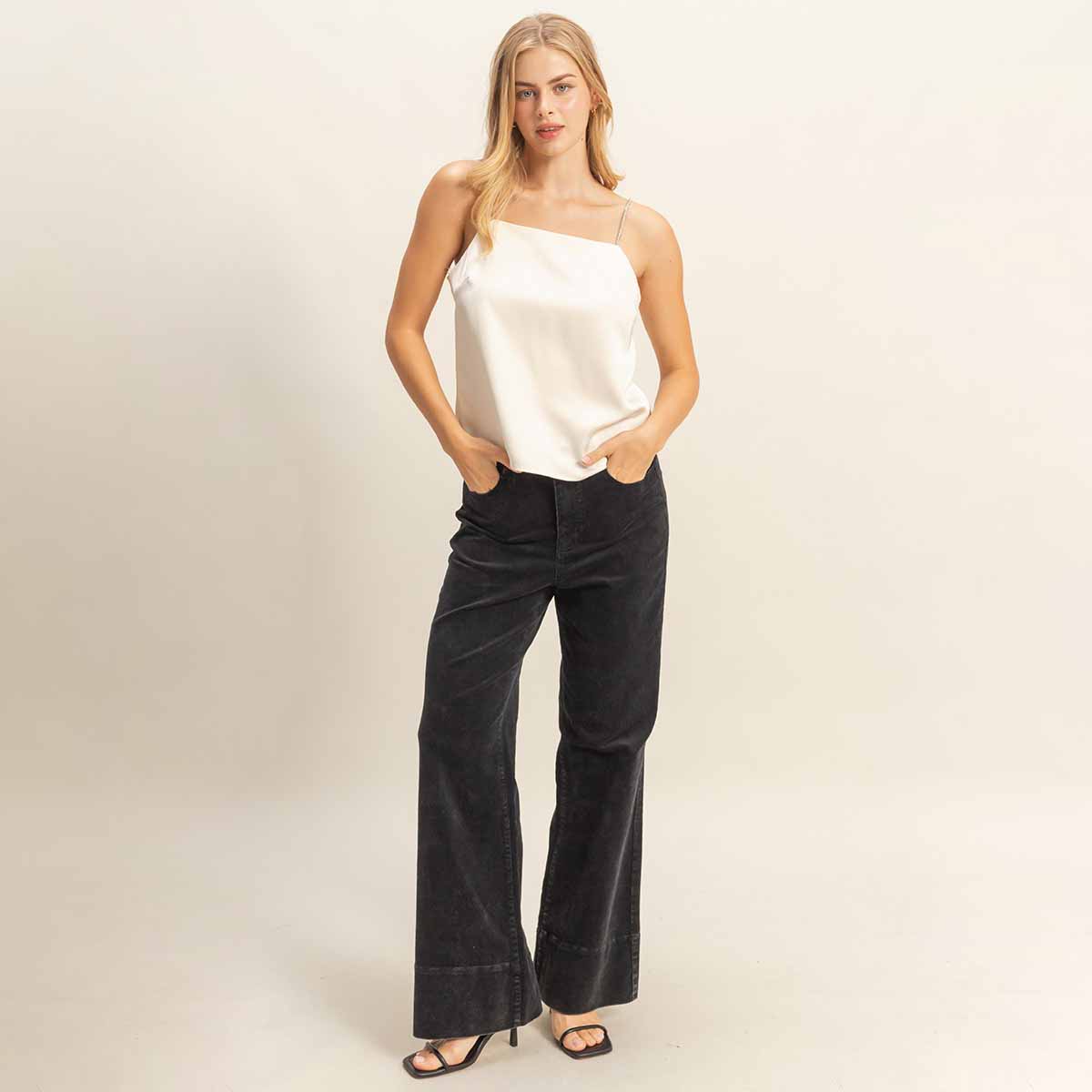 Blusa de satín combina tirantes brillosos con una tela suave y ligera, ofreciendo una sensación de comodidad absoluta sin sacrificar elegancia. Su diseño sofisticado es ideal para quienes buscan un estilo refinado y cómodo para cualquier ocasión.