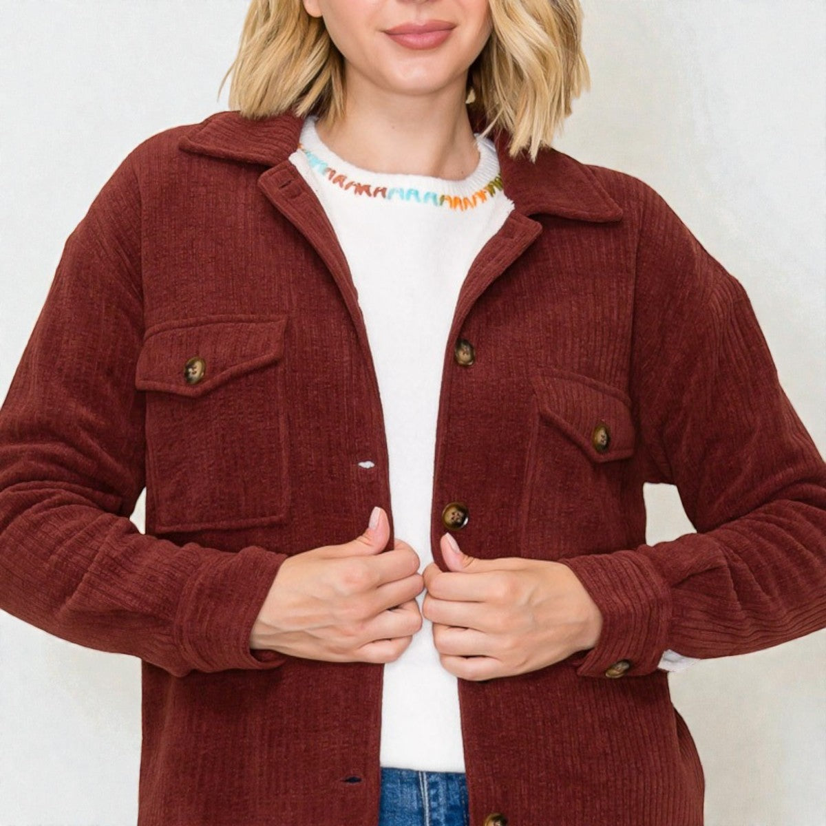 Chamarra confeccionada con materiales de calidad superior que garantizan calidez y confort. Diseño elegante con cierre frontal funcional y bolsos estratégicamente ubicados para practicidad. Su interior acogedor proporciona aislamiento térmico ideal para climas frescos.