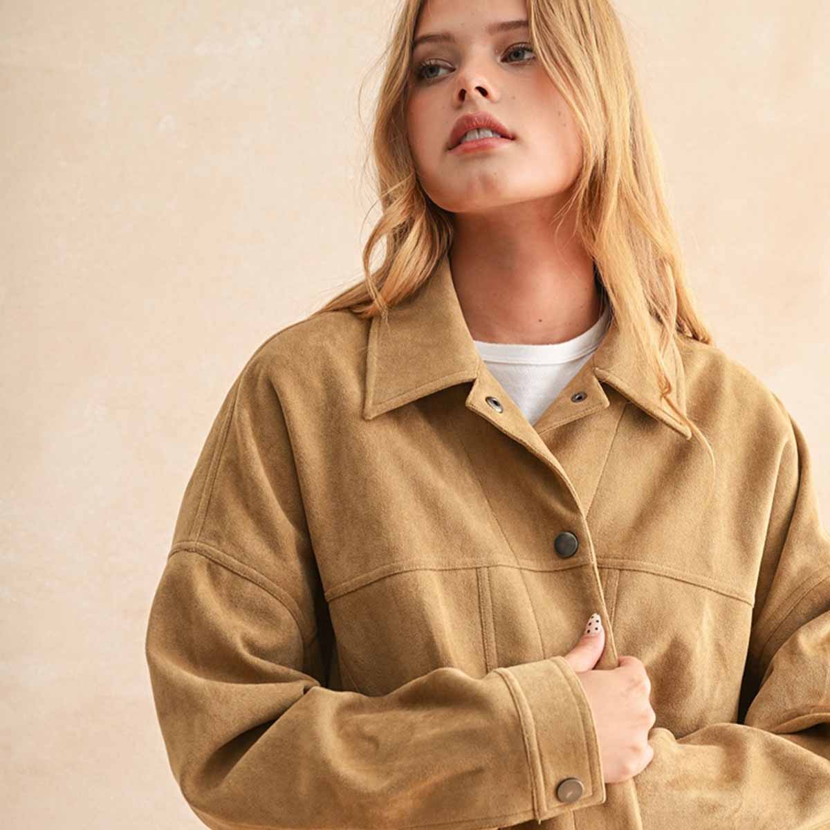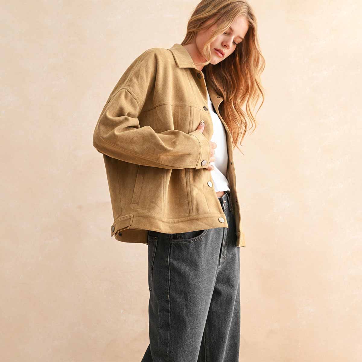 Chamarra diseñada para ofrecer un ajuste cómodo y seguro gracias a sus cierres con botones. Su corte amplio brinda libertad de movimiento y versatilidad, haciendo de esta chamarra una opción perfecta para complementar cualquier outfit con un toque de sofisticación y funcionalidad.