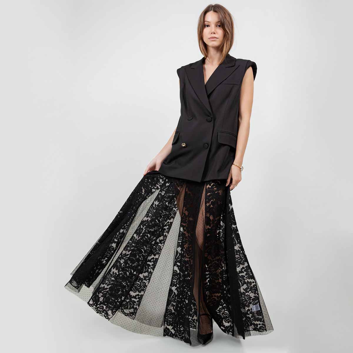 Combina transparencia y delicadeza con un diseño que destaca por su volumen elegante. Su cintura elástica ofrece un ajuste cómodo y seguro, facilitando la movilidad sin sacrificar estilo. Ideal para quienes buscan un balance entre sofisticación y comodidad, esta prenda aporta un toque femenino y moderno a cualquier outfit.