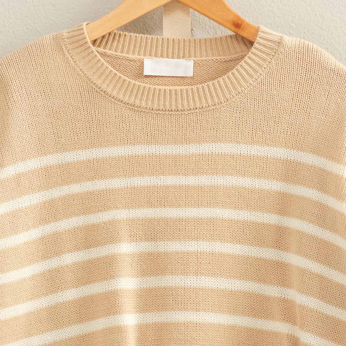 Set beige de rayas combina elegancia y comodidad, ideal para cualquier ocasión sofisticada. La blusa de manga larga con cuello redondo aporta un look refinado, mientras que el short con elástico en la cintura asegura un ajuste cómodo y práctico. Su diseño clásico de rayas realza el estilo sin sacrificar la funcionalidad.