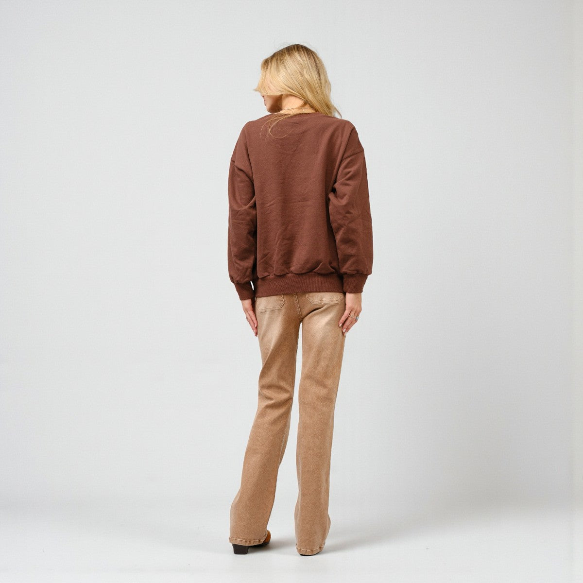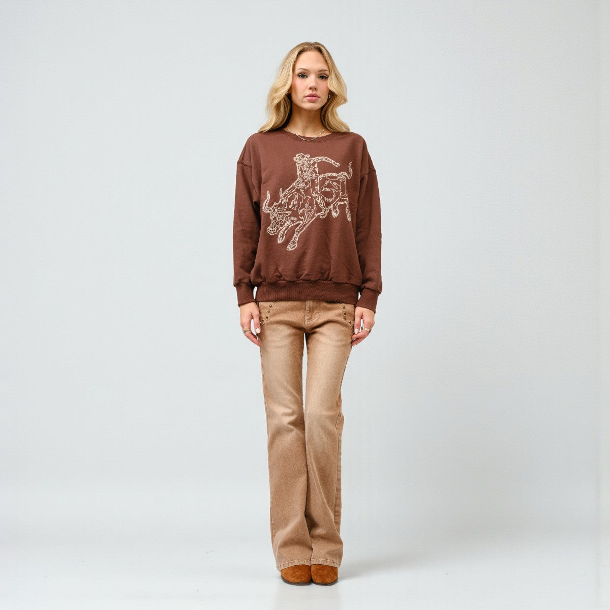 Sudadera de corte clásico confeccionada en tela suave y cómoda, ideal para el uso diario. Presenta manga larga que proporciona cobertura completa y un cuello redondo que define elegantemente el escote. El estampado frontal añade un toque de personalidad y distinción a tu guardarropa.