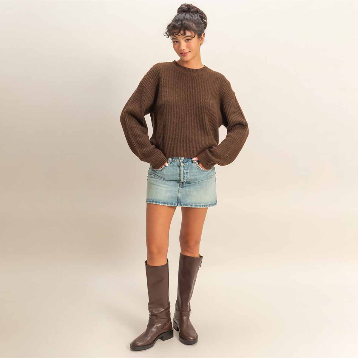 Suéter de punto con cuello redondo y mangas largas. Confeccionado en tejido de punto de alta calidad, ofrece calidez y comodidad para el uso diario. Su diseño clásico y versátil se adapta a cualquier ocasión.