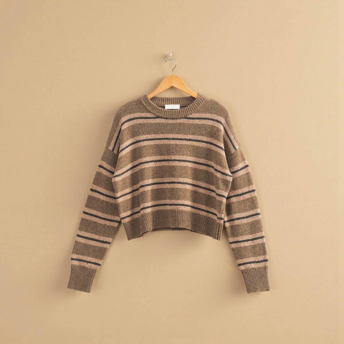 Suéter de rayas su cuello redondo clásico y mangas largas comodidad ofrecen sin comprometer el estilo. El estampado de rayas aporta un toque de sofisticación a tu guardarropa invernal, perfecto para crear looks versátiles que transitan sin esfuerzo de día a noche.