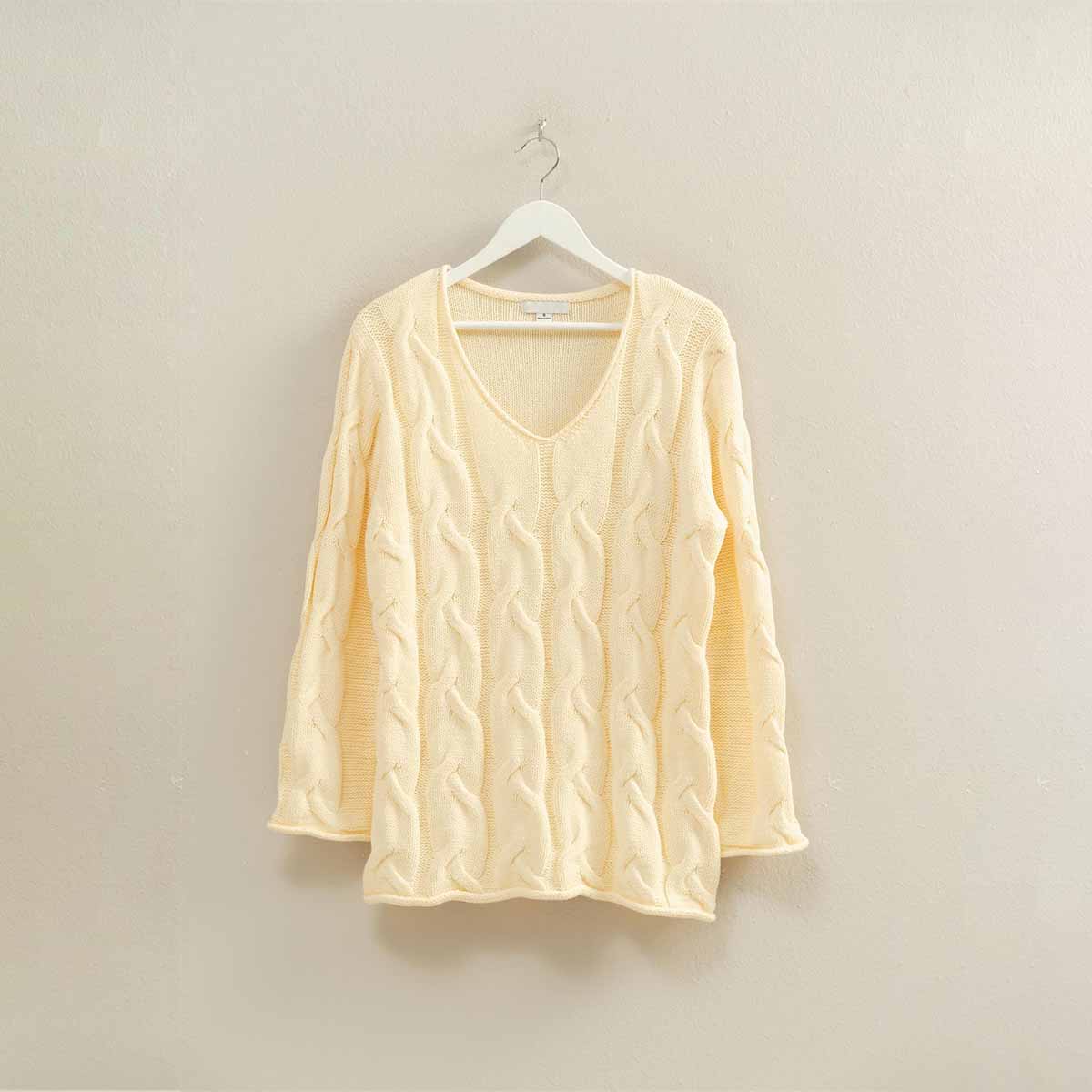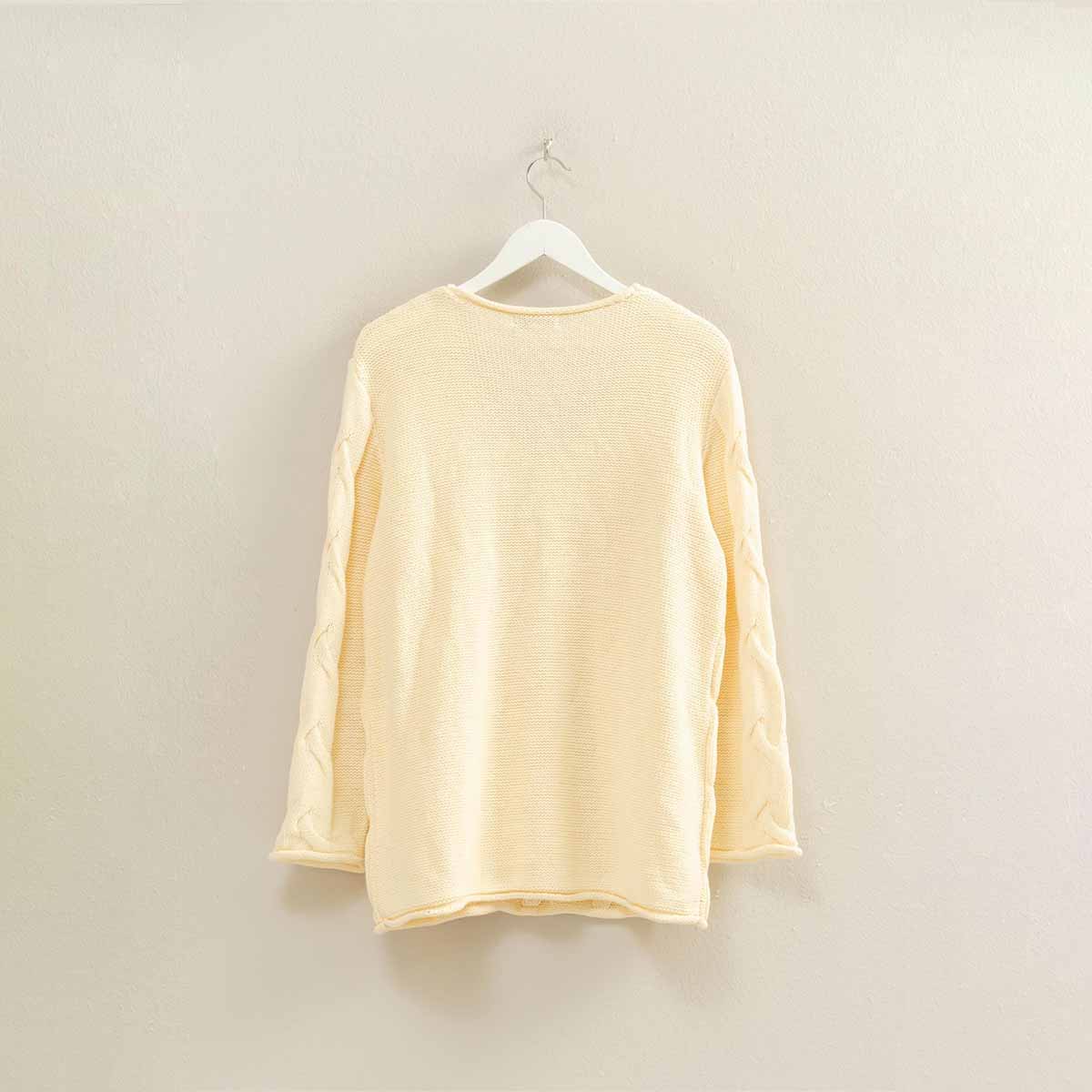 Suéter de punto que combina elegancia y comodidad. Confeccionado en tejido de punto de calidad, presenta un largo generoso y mangas largas que ofrecen abrigo completo. Su cuello en V añade un toque sofisticado y versátil, permitiendo múltiples opciones de estilismo.