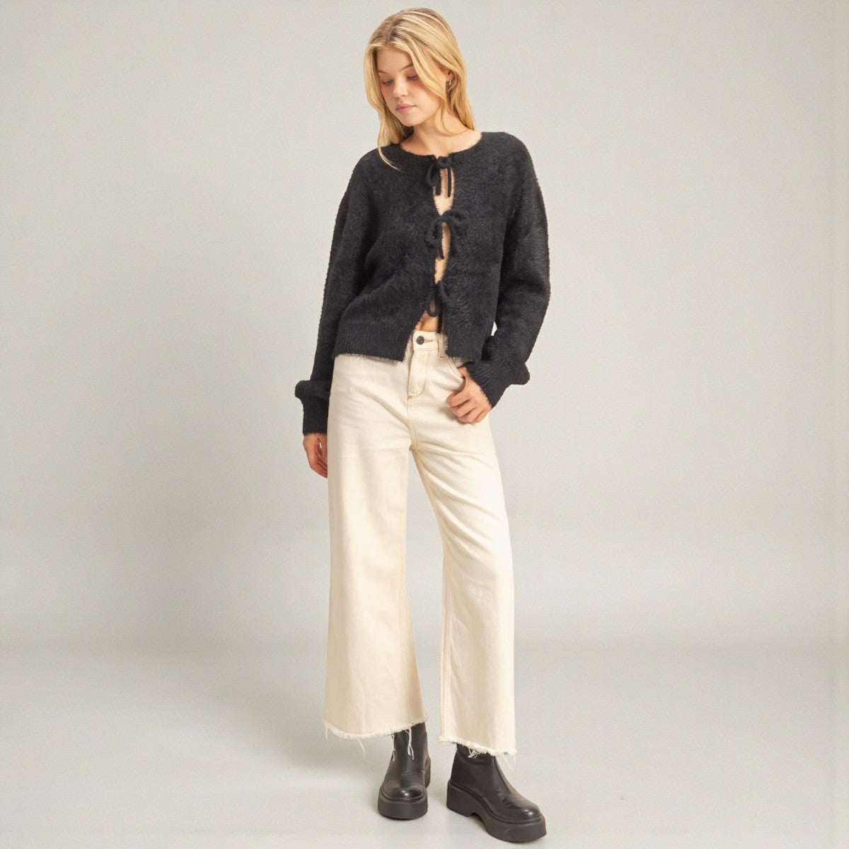 Experimenta elegancia y estilo con nuestro sueter. Con manga larga, cierre con cordones y cuello redondo, esta pieza es perfecta para un look sofisticado y exclusivo.