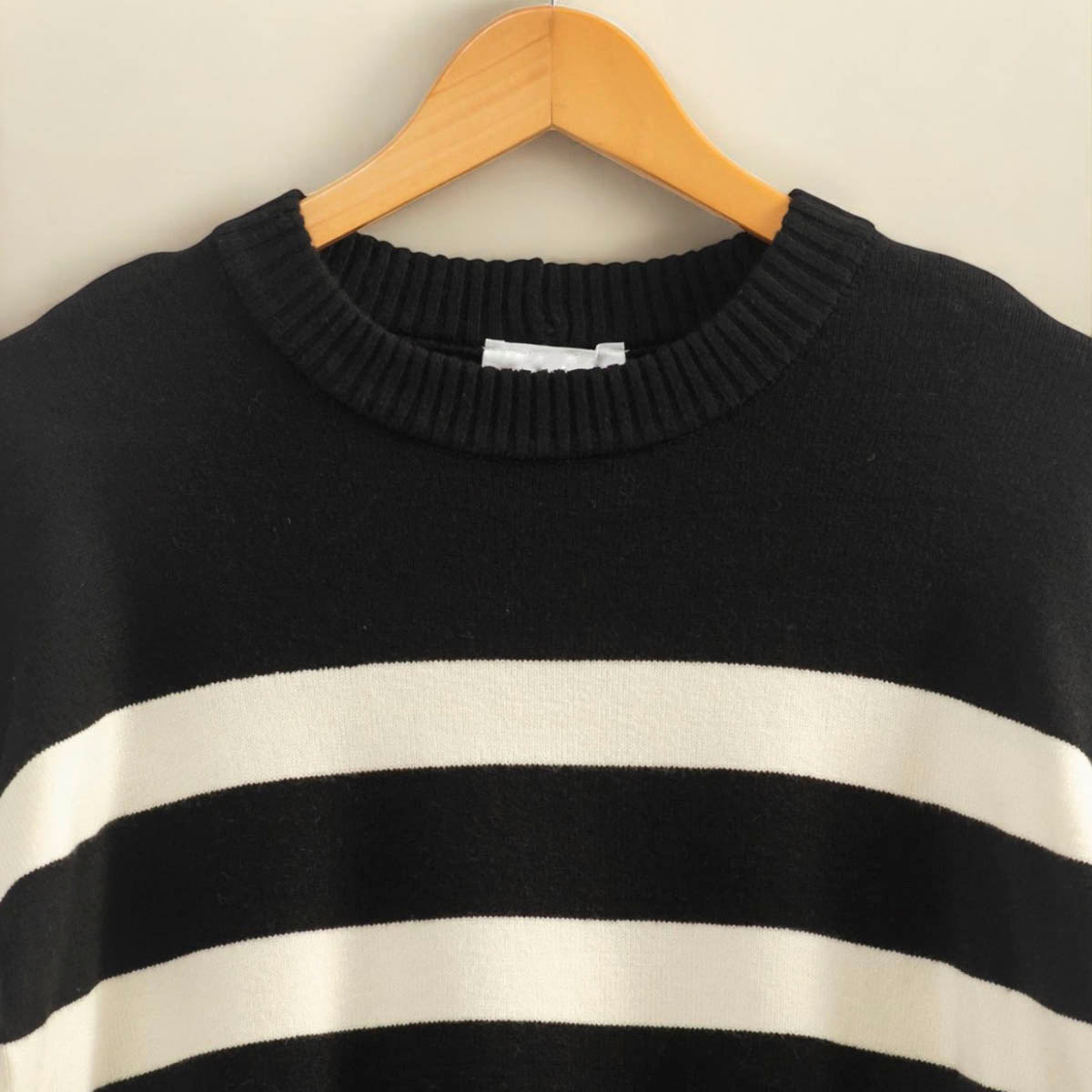 Suéter de rayas en tonos café que combina elegancia y versatilidad. Diseñado con manga larga y cuello redondo, es la pieza perfecta para crear looks sofisticados en cualquier ocasión.