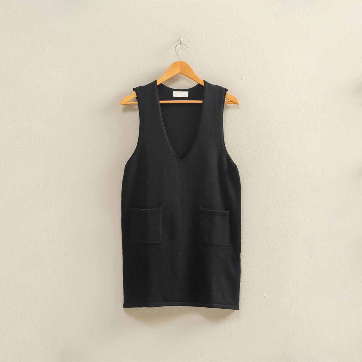 Este vestido mini sin mangas de punto con cuello en V combina elegancia y comodidad. Su textura suave y el ajuste ceñido realzan la figura, mientras que el cuello en V aporta un toque sofisticado y femenino.